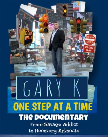 Gary K One Step at a Time is a one-hour award-winning recovery documentary created by Emmy and Academy Award–winning filmmakers. Ten years in the making, the film chronicles Gary’s journey from a “savage addict” who lost everything to a nationally recognized recovery advocate, Hazelden author, and educator.